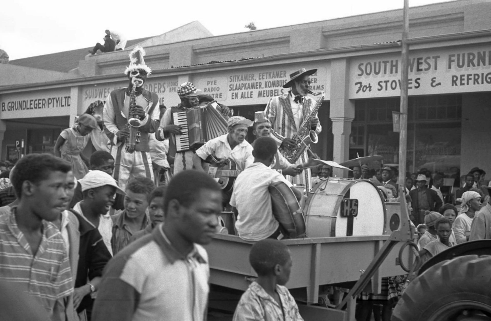 They show ordinary daily life and cultural activities. Dancing competitions were a weekend entertainment. Church events created togetherness. Every year the Location’s Coon Carnival would invade the Windhoek inner city.