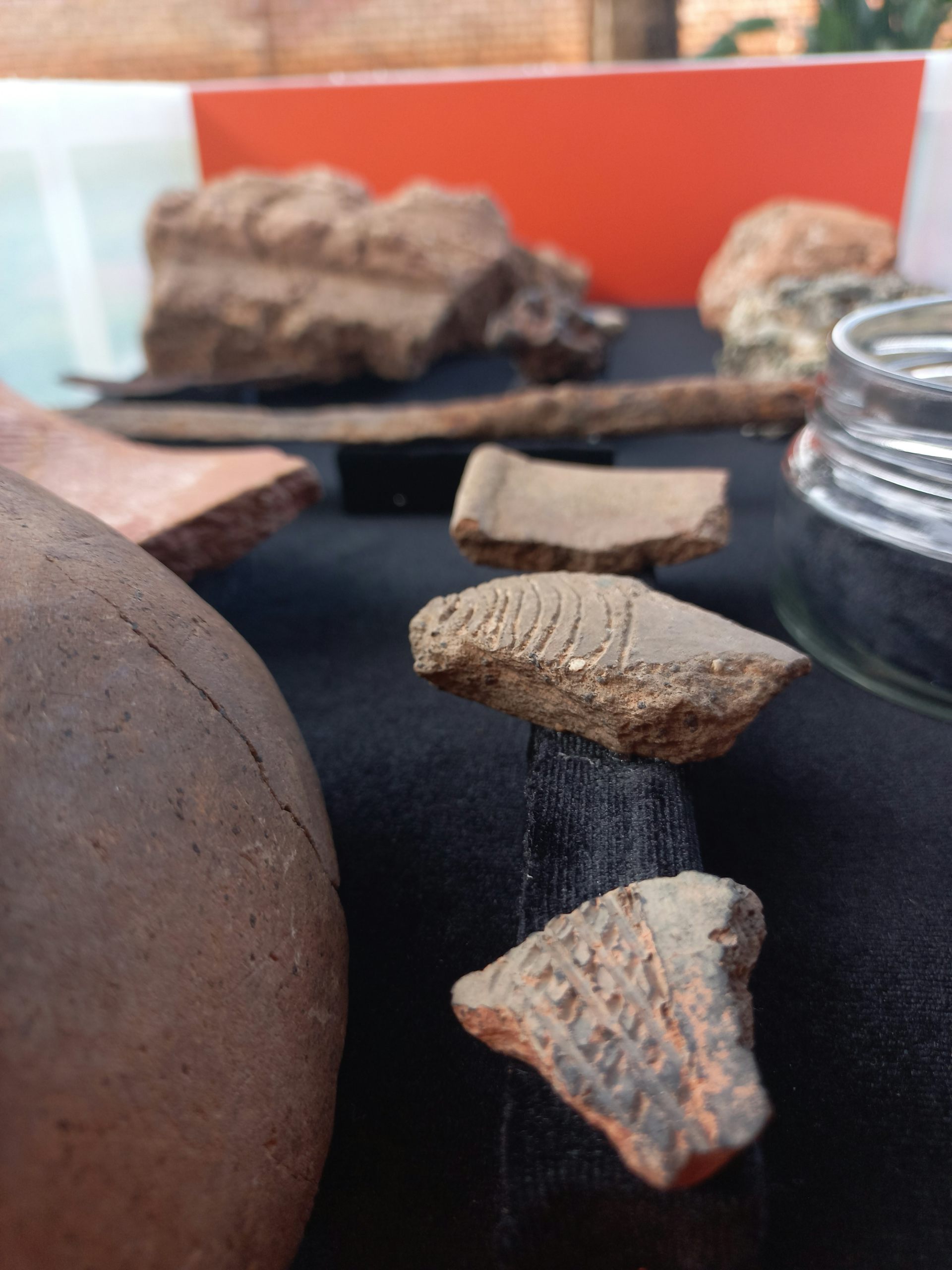 We emphasised touching because learning changes when your hands are involved. Feeling the edge of a stone tool or the weight of a ceramic sherd (a piece of broken pottery) transforms an abstract idea (“people lived here a thousand years ago”) into something immediate (“someone shaped this with their hands”).